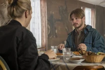 She walks up to a a house where a tied-up dog starts barking at her. Cows are roaming around outside. She finds the door to the house open and enters. She sees some family pictures hanging on the wall. She hears the television in the other room. Fyodor doesn't notice her while she looks around in the kitchen, taking in the homey feel. A young boy, Bor'ka, appears behind Villanelle and asks her who she is. He speaks English, too, because he's a fan of Elton. Yula enters while talking on the phone, ignoring Villanelle as she grabs a beverage from the fridge. Borka's half-brother Fyodor comes into the kitchen and asks Villanelle who she is. Bor'ka tells him she speaks English, making him think his room's been rented out on Air BnB again. Grigoriy, Borka's father, comes in and he, too, asks Villanelle who she is. Bor'ka urges them to speak English. Villanelle asks about Pyotr as Yula walks in. She thinks Villanelle is another one of Fyodor's sluts. In Russian, Grigoriy asks the others to call the police. Villanelle says that won't be necessary. She says they should ask Pyotr. Finally, Pyotr walks in and immediately recognizes his sister, Oksana. They all thought she was dead.