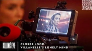 Villanelle arrives at the Bitter Pill office. She claims she has a meeting with Eve. Audrey says Eve is not here. Villanelle looks around the office and sees their work on the murders. She points one out and says that wasn't her. Audrey goes to inform Jamie and Bear that Villanelle is here. The team is scared of her. Bear wonders what she does with the penises. Villanelle watches them as they cautiously approach her. She receives a call from Konstantin.