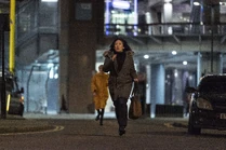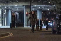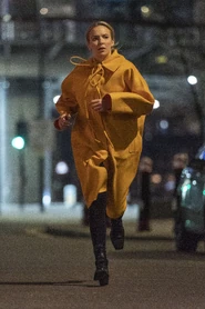 As Rhian and Villanelle wait for the train, Villanelle asks to talk about her outfit, which is all black. Rhian wants to be comfortable. She was trained to wear clothes that allow a full range of motion. Villanelle points out it's funny how they are two ruthless killers who just blindly follow orders. She starts jumping up and down. Rhian tells her sheep are happier than wolves. Villanelle scoffs. Rhian prefers to take her job seriously. Villanelle starts tickling her to make her laugh. As the train arrives, Rhian shoves her into the wall. She doesn't mind Villanelle's current crisis as it will allow for her to take Villanelle's place sooner. All she wants is for Villanelle to come with her quietly now. Villanelle apologizes in advance and beats her up. She briefly strangles her. As soon as she lets go, Rhian backs away from her and says she's sorry. Villanelle kicks her onto the track. Rhian begs for help as the next train approaches but Villanelle just watches her die.