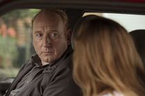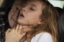 She approaches a woman in vegetable aisle but the woman tells her she doesn't have any change and rushes off. She tries again with a man getting things from the refrigerators. She scares him away by obsessively smiling at him but later approaches him at the cash desk claiming that a man outside - whom she says is her stepfather - hurt her. She asks the man for some help getting out without the man noticing her. She stays behind him as they leave, leaving behind his groceries, and make their way to his car. They get in and he hands her a handkerchief. She tells him she has nowhere to go. He refuses to leave her so he invites her to stay in his spare room for a night or two. He assures her she'd be safe. She accepts the offer, secretly disgusted over having to play nice.