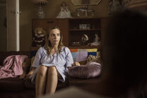 Villanelle and Julian arrive at his house, which is filled with dolls. His mother collected them. She claims they're lovely. He straightens a doll. He shows her to the couch. She asks if he has any cake. He leaves to go buy one, locking the door behind him. Once alone, Villanelle checks her wound, which looks infected. She then hears a noise upstairs.