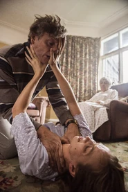 Villanelle is woken up by the same noises she heard in the afternoon. She grabs a statue and heads out to investigate. Julian is asleep in his room. She unlocks another door and is confronted with an elderly woman, who starts screaming. Villanelle is about to knock her over the head with the statue but Julian catches her wrist in time. It's his mother. She has dementia. Julian puts his mother back to bed.