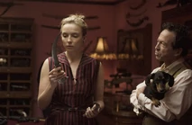 She opens the door for Villanelle, who tells her not to do anything stupid and enters the house. Eve has her take her shoes off. Villanelle complies. She offers to let Eve search her but Eve doesn't see the point. Villanelle wants a drink. She opens the bottle she brought. Villanelle has noticed she doesn't seem surprised to see her. Villanelle thought she had forgotten about her. Eve hands her a cup as they don't have champagne glasses. Villanelle dumps Eve's phone into a cup, destroying it. Villanelle asks her if she's scared. She's not. Villanelle orders her to drink. Villanelle says she should be more afraid after what Eve did to her last time but she's not. Villanelle says Eve could have killed her. Eve admits to thinking about that all the time. Eve caresses her face and asks her if she thinks about it. All the time, too. Villanelle asks if she's going to apologize. She's not. Neither is Villanelle. Eve says she needs her help and compliments her outfit. Villanelle picked a black dress because she's about to be in mourning. She's here to kill Eve. Eve says that was her idea. She needed to see Villanelle. She knew Villanelle wouldn't just shoot her or run her over with her car. Villanelle takes out the pills she brought. They sit down. Eve swallows all three pills as she looks Villanelle straight in the eye. Villanelle didn't think she would actually do that. She says that was actual arsenic and yells at her to get it out. Eve goes to throw up in the sink and Villanelle starts laughing. She says poison would be too easy. She walks up to her and puts a knife to her throat and lets it slide down over her dress. She says she's expensive and asks if Eve is going to give her everything she wants. Eve says yes.